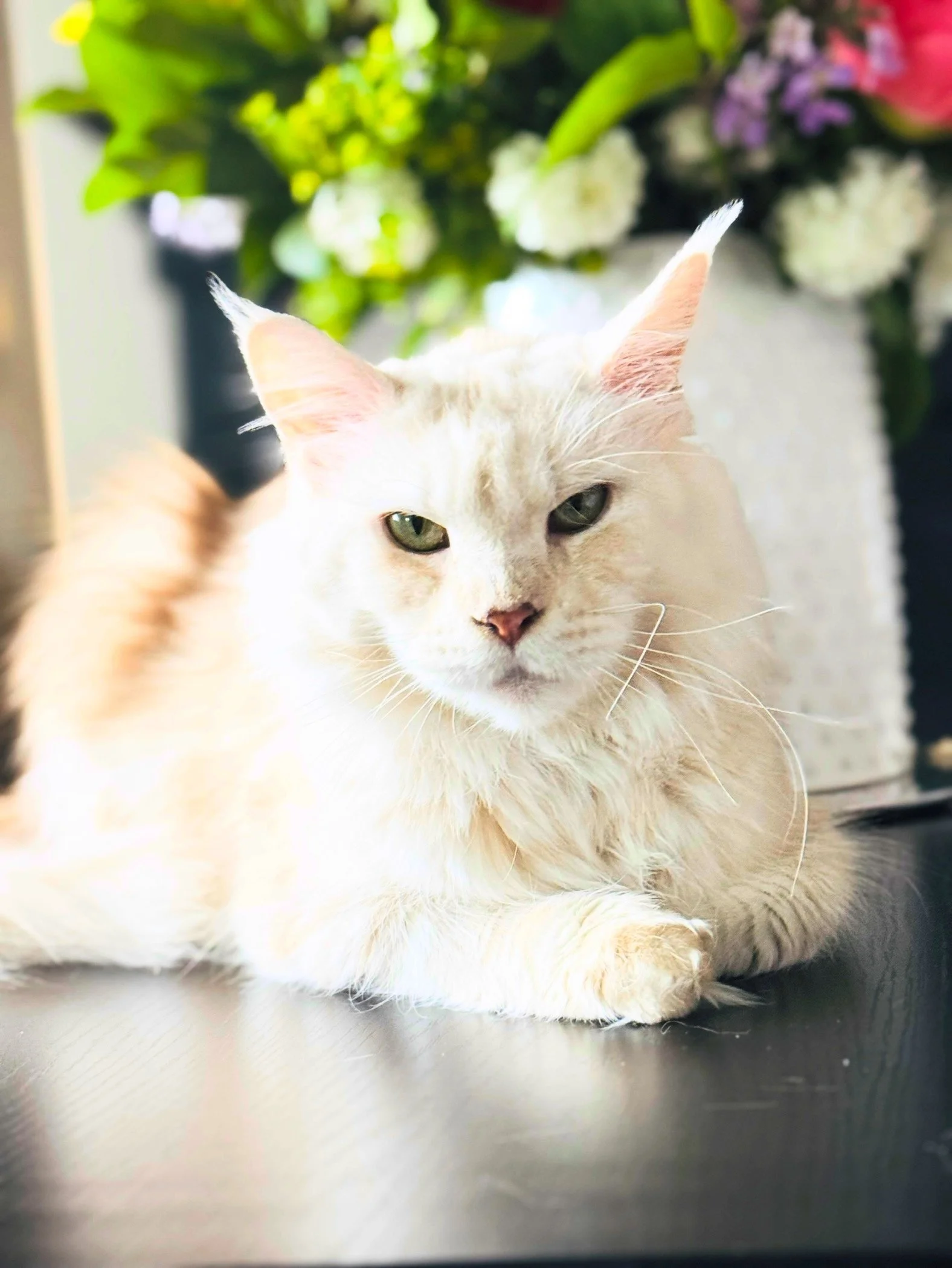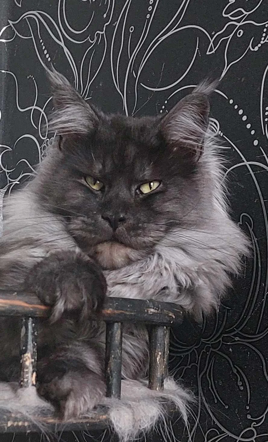 This breathtaking black smoke Maine Coon is the sire of our beloved King and the cornerstone of our bloodline. With piercing green eyes, a massive frame, and a thick, luxurious coat, he represents the best of the breed, majestic, gentle, and unmistakably powerful. His legacy lives on through generations of healthy, affectionate, and stunning Maine Coons.
